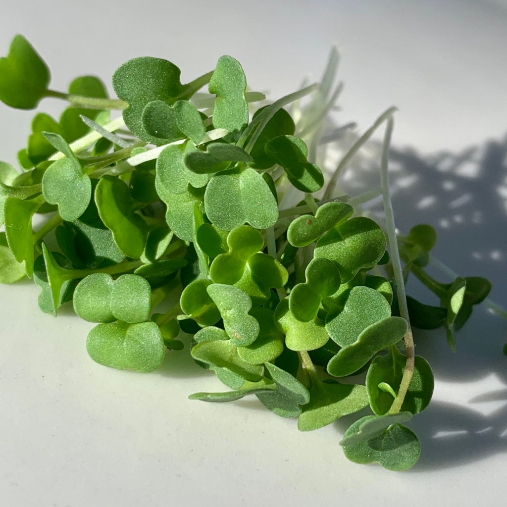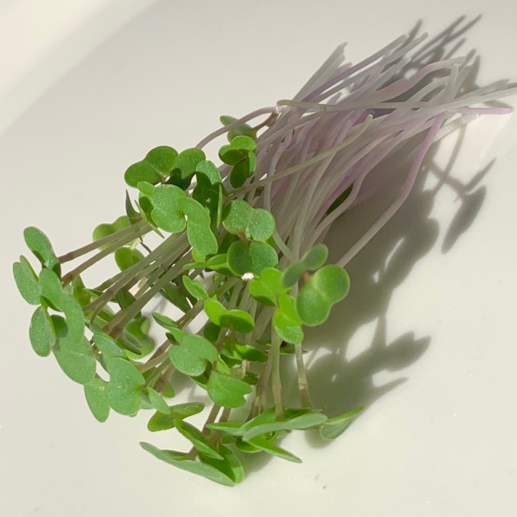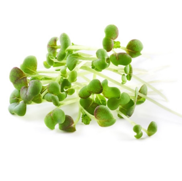 Radish Peppery, strong flavor. Delicious on sandwiches, burgers, bagels, salads and sushi.